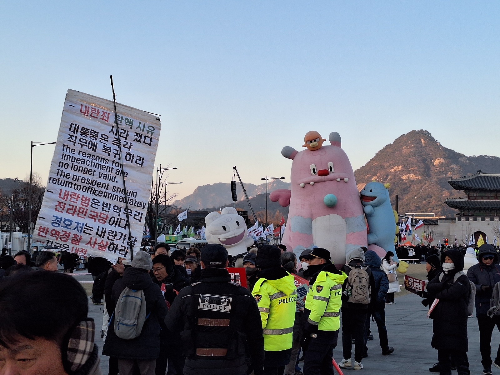 A noisy anti-Yoon rally was being held just outside the Palace gates. The police had created a buffer zone between the pro and anti-Yoon demonstrators. I had nice Korean barbecue with some colleagues who happened to be on town tonight.